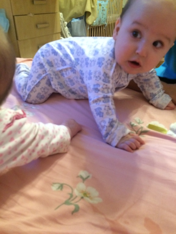 и честно я думала, что если к третьему сеансу не станет лучше - сверну это занятие, иначе лопнут мои барабанные перепонки. И вы знаете, прошло уже на втором сеансе, как не странно. В четверг и пятницу дети были очень спокойны, а Сонька даже прихихикивала, когда ей ножки массажировали, широко улыбалась и гулила. Лева вообще в пятницу начал болтать с массажисткой, все озвучивал, каждое движение, своими - ааааггггггггхххххххххххххххх, ууууууууууу, ааааайййййй. Еще мы сделали вторую АКДС и полиомелит - перенесли ттт хорошо, без особых проблем, без температуры. Немного беспокойно спали пару ночей. Еще мы активно стали кушать прикорм. Попробовали уже гречку и рисовую кашу, кабачок, яблоко, тыкву, морковку, цветную капусту и брокколи, грушу и персик. Кашку даю раз в день, в чистом виде гречка у нас не пошла, потому добавляю яблочное пюре и малыши на двоих съедают примерно 260-270 гр, после допаиваю молоком. Еще малышня активно замечает друг друга, любимая игра - кто громче запищит в своей кроватке - в эти моменты у меня глаз дергается и уши закладывает