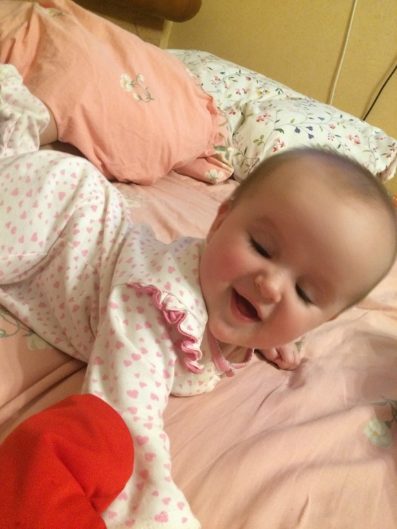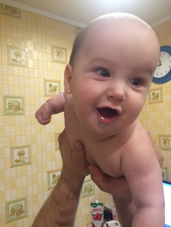 Софа, Соничка - бусинка, горошинка. Красотка растет, хитрая и очень милая. Все схватывает налету, что показала массажист со второго раза уже делает правильно. Папа у нее - свет в окне. Любовь к нему неземная, из далека слышит папин голос и все - центр вселенной только рядом с папой и у него на руках. Пытается сесть, сама не присажываю, все что делает она все делает сама. Спинку держит очень уверенно, и потому ей не надо вставать на четвереньки, ей надо сесть и взять в руки игрушку. Очень быстро переворачивается и на животе перемещается - тут теперь то же ловить надо дамочку, иначе улюлюкнится куда-нибудь. Гулит, гундит, улюлюкает и хохочет в голос, моя сладкая девочка кокетка