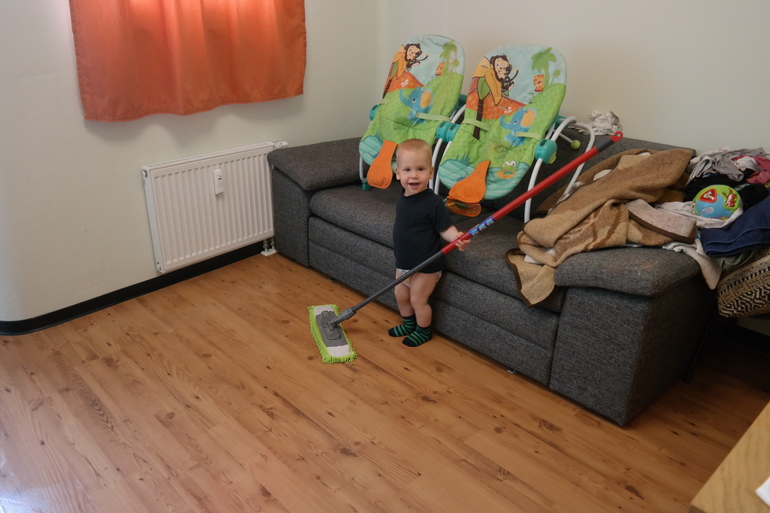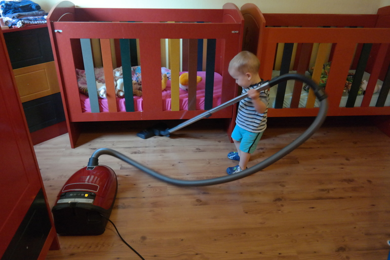 Наш Малышон просто светится от счастья, когда ему доверяют что-то сделать по дому. С удовольствием пытается мыть пол, пылесосить, помогает убирать со стола, разгружать-загружать стиральную и посудомоечную машины. Просто чудо, а не ребенок!