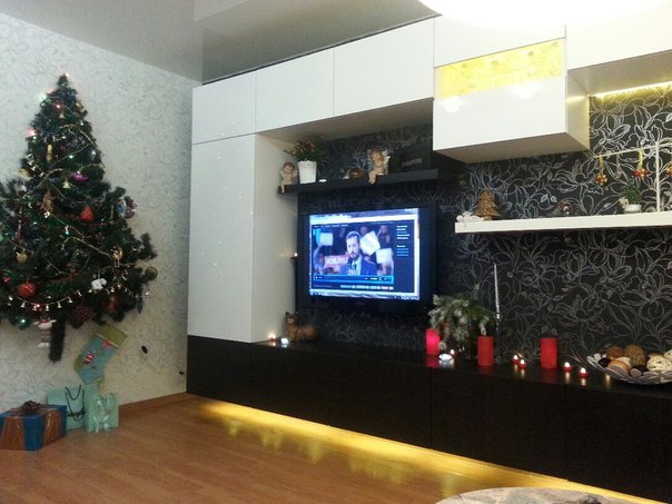 Мои конечно маленькие ещё но планируется ёлку ставить в манеж, там сейчас телек стоит.