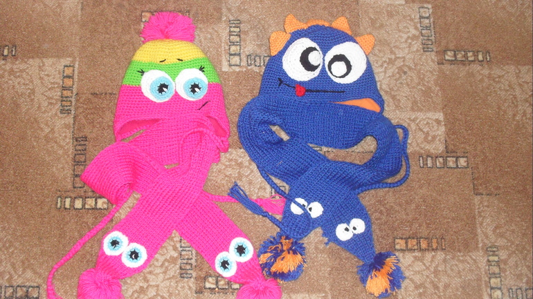 Вот таких монстриков я решила подарить ребяткам на зиму, на площадке мы теперь самые яркие, среди этой сырости и слякоти! Обязательно покажу на детях пока поймать не смогла!