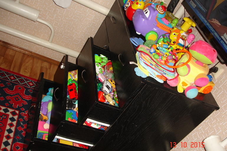 Вместе с детьми и для детейбыл комод мой,а теперь детский)),постепенно все ящики заполнились,кроме вехних (там носки и колготы их) игрухами,т.к. не вижу смысла даже пытаться там вещи складировать)),иногда посещает мысль разобрать игрухи,всё поскладывать,но всё никак,всё равно ненадолго им...