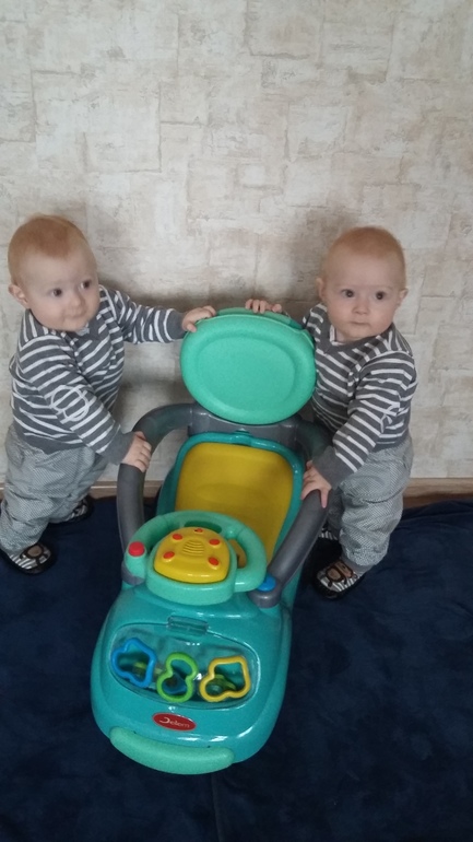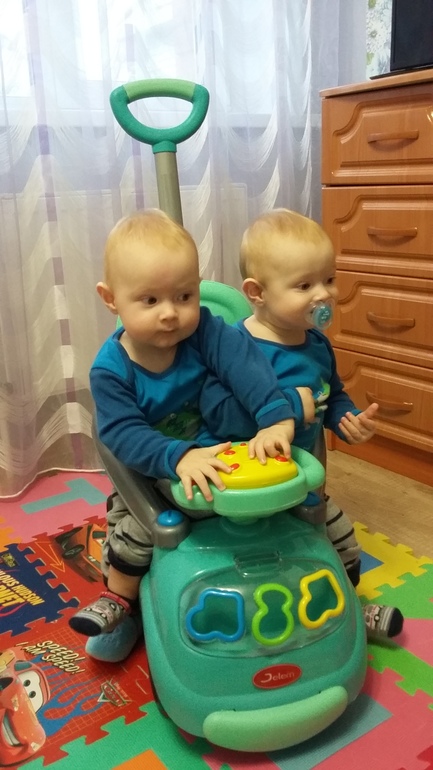 Такие одинаковки, все захотела близнецов , не близняшек лучше)))) У меня один в 9 месяцев ничего не делал, а другой в это время уже здорово ползал и сидел. Курс хорошего массажа и все. После третьего сеанса мы поползли, а после 9 встали сами. Были слабые мышцы шейного отдела. Массажистка хорошая у нас была, а она его прямо всему учила и я учила ползать Матвейку на перевернутом тазике.