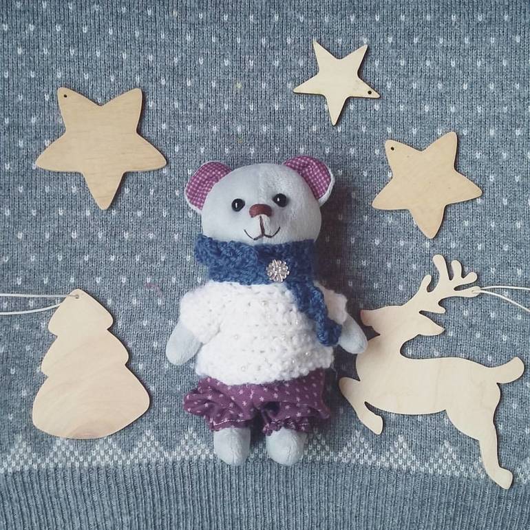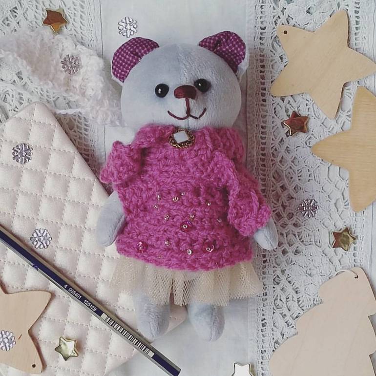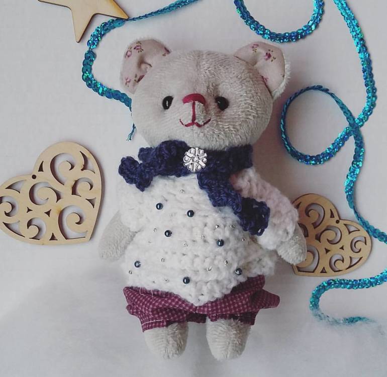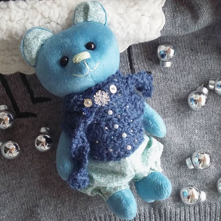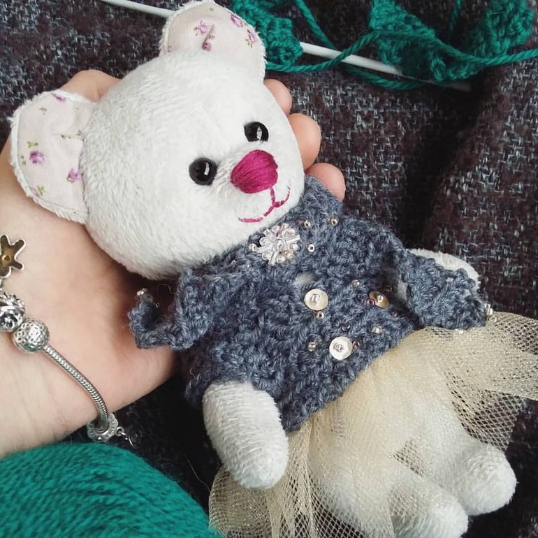 Крошечные мишки, 18 см ростом. лапки крутятся))) Одежки сама вязала)))
