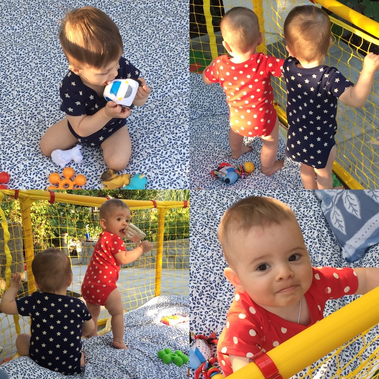 Что мы умеем, да наверное все что должны уметь малыши в этом возрасте, пошли они в 11 месяцев, с разницей в несколько дней.