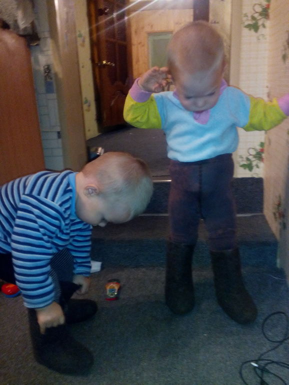 Безумно смешные и бешеные дни, нам 1,3 дерутся. Все отбирают. Но как писнут бегут за тряпочкой вытирать )))) носят тапочки, носки, знают где, чье. Нашли очки из набора врача, уписаться можно над ними в них.