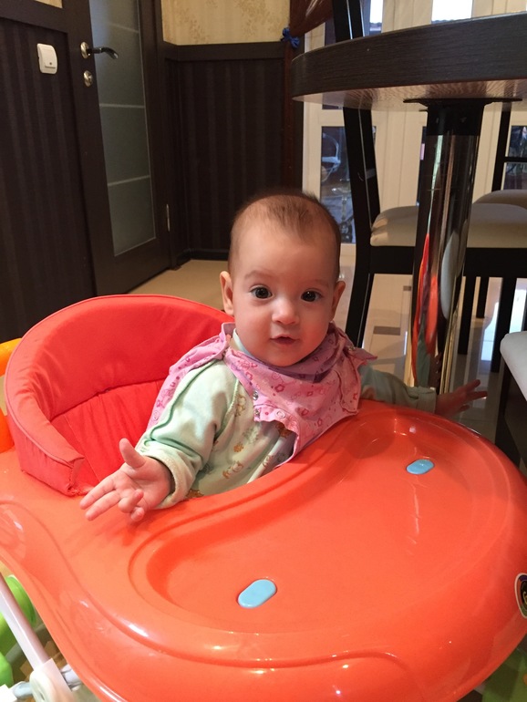 Недавно попробовали поставить в ходунки очень понравилось ходит с осторожностью