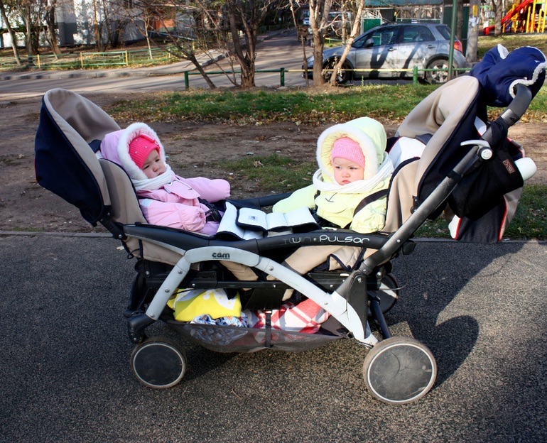 Спустя 3 месяца использования 2 раза в день долгих прогулок. Чтобы было понятно - использовать начали в начале сентября, девчонкам год, вес около 11 кг. Покупала б/у. Ездили на mountain buggy duet, но поняли, что в зимних комбезах да еще и овчинных конвертах мы не влезем в коляску(( они у меня любительницы поспать на улице часа 2-2,5, так что вариант надеть ботиночки и без всяких конвертов доехать 5 минут до площадки и там гулять - увы, не наш, иначе я бы ни за что не рассталась с багги.