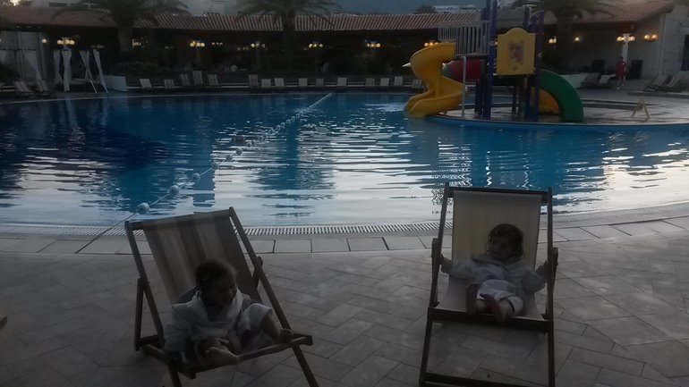 Нагло ходили в отель Словенска плажа. Купаться в бассейне и танцевать на мини-диско. Прям вот с коляской к бассейну. Вопросов никто не задавал)