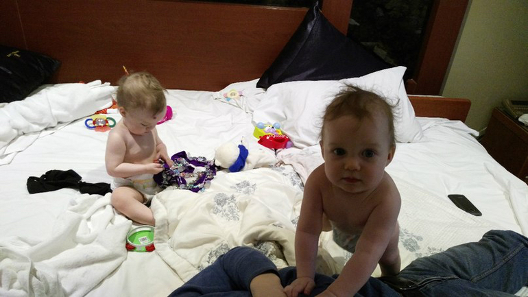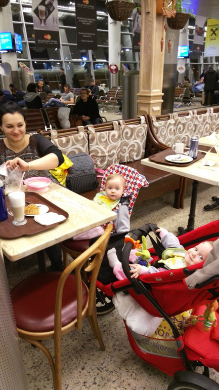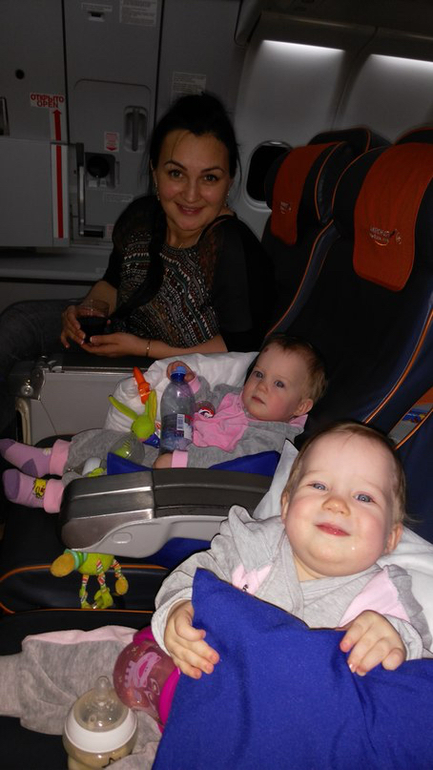 Но вот обратный путь получился сложнее: спали мало, я чемодан собирала до поздна, а подъем ранний был. Летели до Москвы- проползали по самолету на четвереньках, всем строили глазки и заигрывали. Потом спали в люльках. В Москве были уже под вечер, малышки притомились, а везде же контроль проходить- коляску собирать-разбирать, в итоге нормально поспать им не удалось, пока ждали посадку, устроили концерт))) бедные пассажиры))) но в самолёте сразу же вырубились и спали уже всю дорогу до дома- и в коляске и в такси. Домой приехали, переоделись и спать. На следующий день вошли в режим как ни в чем не бывало.