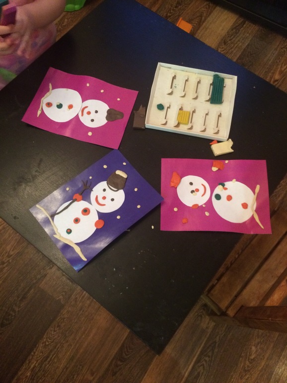 Сегодня день снеговиков! Сразу скажу что вчера после всех прогулок и горок руки-ноги-голова отваливались и готовить ничего не стала. Поэтому сегодня урезанный вариант получился. Хотя снеговика думаю мы усвоили немного.