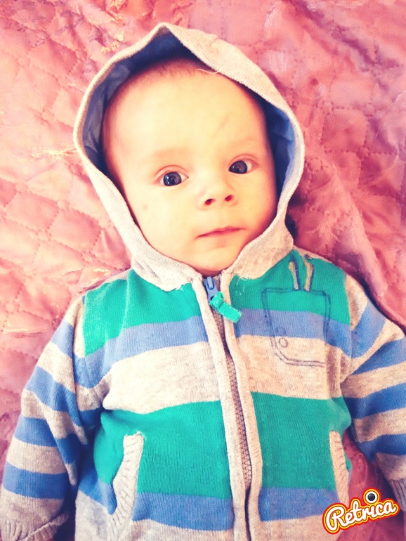 Старший Пашуля! Наша батареечка энерджайзер, мало спим, много кричим, любим улыбаться, когда нас крутят-вертят-кидают, крепко-крепко прижимают. Научились тянуть ручки, если я предлагаю игрушку, да и вообще, всё вокруг нас надо. Знает, где пакет с игрушками, стоит положить его рядом, сразу переворачивается на пузо и начинает всё выгребать. Лупит по всем кнопкам, чтоб играли песенки, встаёт на вытянутые ручки, подтягивается за всё, пытается сесть. На коврике оставить на спине невозможно, подтягивается за дуги, потом вся конструкция не выдерживает. Отбирает игрушки у Вити. Вот всё ему надо, что перед ним не лежит. Любит прикорм, рот прям открывает и орёт, если не даю ещё. Приходится отвлекать)))) каждую неделю учит новые звуки: на той неделе визжали целыми днями, на этой делаем брррр губами. И не важно, когда, во время еды тоже, чтобы мама чистой не ходила! из не очень хорошего - есть тонус, по левой стороне больше, оттого есть кривошея, будем делать массаж и электрофорез. Увеличилась лоханка в почке, прописали солевую грелку и Элькар.