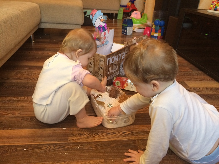 Сегодня дети осознали что у нас есть волшебная коробка и что снеговик приносит нам почту каждый день! Они знают где она стоит, и по зову мамы а может нам что-то принесли, бегут с визгами криками открывать