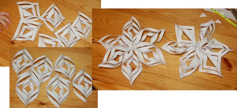 Но у меня совсем не было времени, чтобы подготовить материал для таких флажков, поэтому показала детям, как делать обычную крученую гирлянду из гофрированной бумаги. И еще снежинки мы делали по детсадовскому заказу, себе тоже я сделала несколько. Дети в снежинках участие не принимали, просто смотрели, слушали озвученный процесс и баловались клеем )) Хотя нет, я им дала степлер и они делали браслетики из обрезков бумаги )) А я потом скрепки весь вечер собирала с пола ))