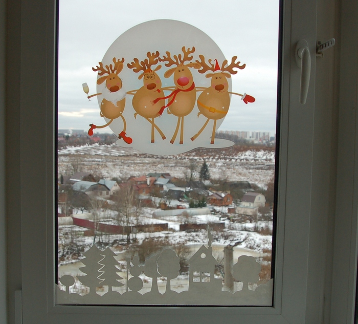В выходные мы украшали окно в зале. Побрызгали снегом через трафарет и поклеили наклейки. Снежинки придут только завтра к вечеру так что украсим ещё какие-нибудь окна и покажем :) а пока вот: