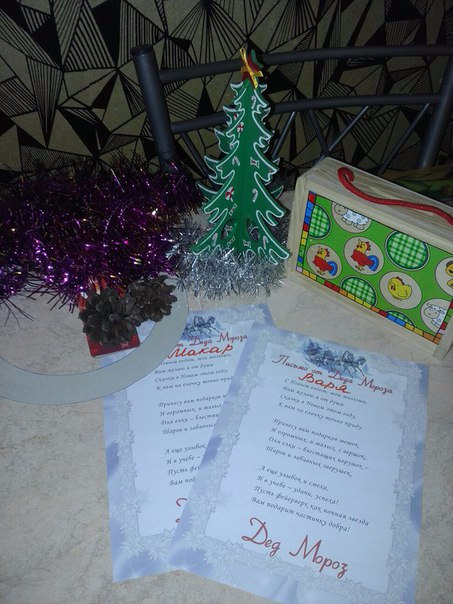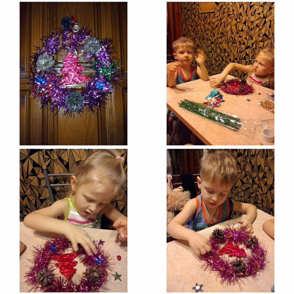 Двойняшки с 3-х летЕще два денечка, понедельник был очень тяжелым, еще и простуда подкосила меня))) Поэтому ДМ принес нам формочки для кинетического песка и мы просто строили башни, точнее Букашки строили, а я лежала рядом))). а Сегодня мы получили письмо от самого ДМ, и сделали новогодний веночек на дверь. А еще начали играть в мемори, пока не просто, но память тренировать надо)))). А завтра начинаются утренники, сначала у меня в саду, где я буду снегуркой на 3 утренниках, а в четверг у малышек!!! и еще один утренник у меня! а с пятницы букашки не пойдут в садик, сначала посидят с бабулей, потом с моей сестричкой, вообщем от садика тоже надо отдохнуть))) а еще пришел мой браслетик с именами моими букашками!!