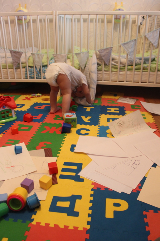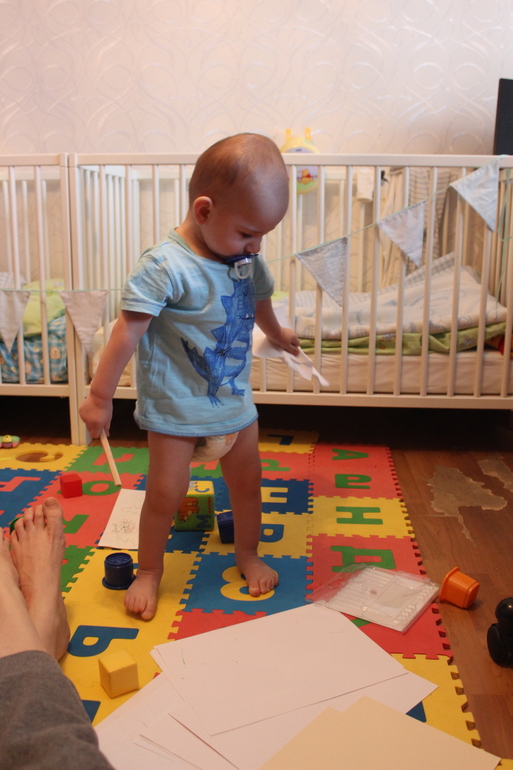 Порой демонстративно мне поставят кубик на кубик и стаканчик в стаканчик. На месте не сидят вообще!!! Точнее как, сидят...но не с обширной коробкой развиваек..а с бусами елочными например или ключами или еще чем...Карточки жуют. На пальчиковые краски разревелись