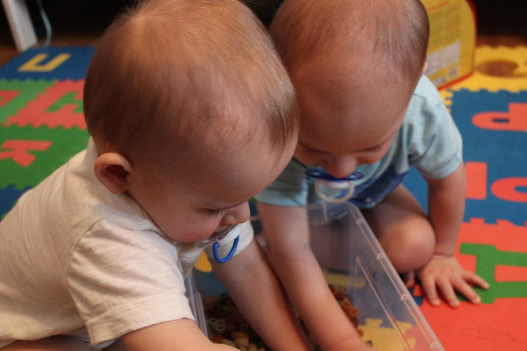 С болтовней пока туго, сплошной тарабарский. Повторяем им мама-папа, но и то пока не сильно внятно.