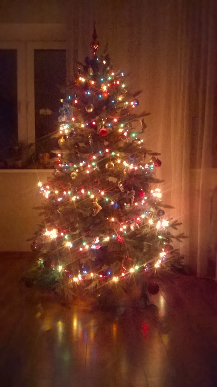 Елка продержалась почти сутки)..вчера дубасили молотками по ней, сегодня "снимали"игрушки)уронили не специально, но показательно))
