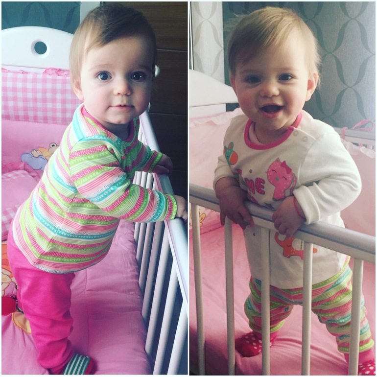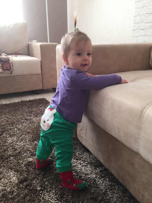 Эмилия Дмитриевна: вес 8300 гр, рост 72 см. Наша улыбака и зубастик. У нас уже 5 зубов! Умеет сидеть, ползать так и ползает как раненый соладат, хотя садится сама с четверенек, а вот ползти так не хочет! На ножки сама тоже не встает пока, но так же как и сестра стоит очень уверено если поставить. С кормежкой у нас целая эпопея. День на день не приходится. Иногда ест нормально более ли менее, а иногда это просто испытание моих нервов и терпения... По ночам так же спит не важно, просыпается по 3-6 раз и кушает по чуть чуть...все как и было. Прогулки наши по прежнему для нас испытание. В коляске толком не сидим и тем более не спим. Я ели вдруг. Каким-то чудом и засыпаем то спим максимум минут 30. Постоянно ноют и плачут когда сидят в коляске во время прогулок. Приходится по очереди таскать их на себе. Я знаю что для многих прогулки это отдых, но для меня это полный трэш. С режимом все стабильно. Спим два раза в день по 1,5 часа. Стали укладывать спать чуть позже их в 22:00 и теперь они не встают так рано утром. Слава богу спят пока до 8:00-8:30.