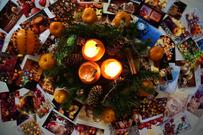 Ещё в этом году наш стол украшали апельсиновые свечи с корицей.. Да, они истончали приятный аромат, разливающийся по всей кухне!