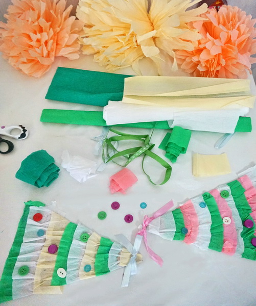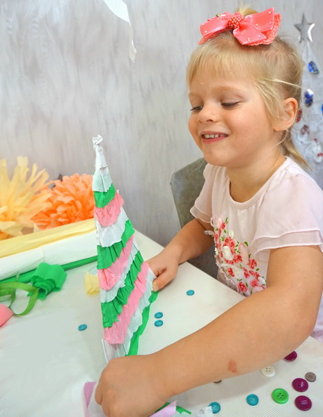 Ёлочки из креп - бумаги получились очень нарядными и нежными.
