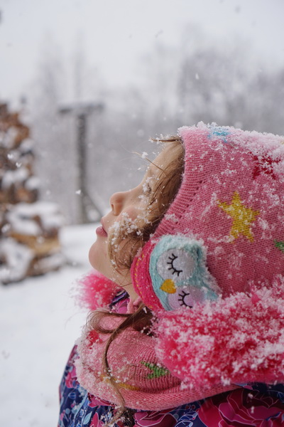 Декабрь в этом году был теплее, чем обычно.Дети так долго ждали зимы, что когда выпал первый снег 10 декабря,Настёнка минут 5 стояла и смотрела на небо,периодически закрывая глаза.