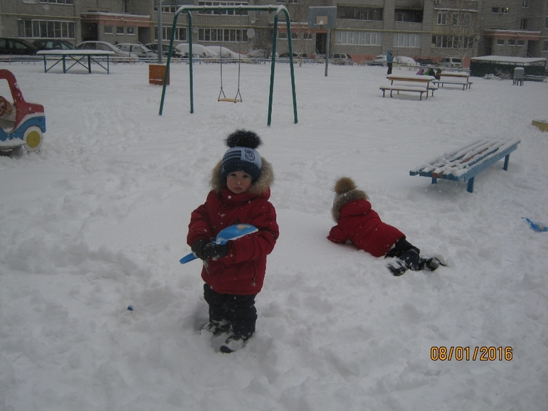 Ну и напоследок, во время двухдневного снегопада и чуть отступивших морозов, мы накатались с горок и навалялись в снегу.