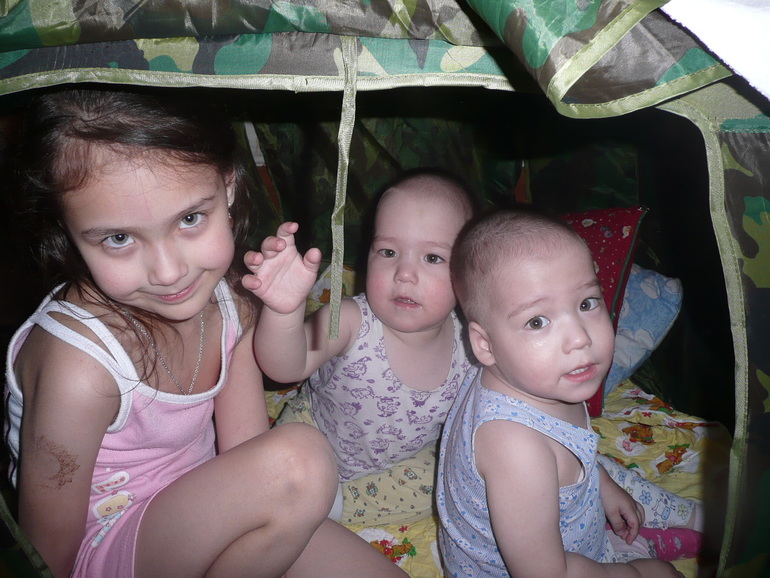 Временно у нас гостит свекровь, поэтому у Дарёнки почти "половая" жизнь. Кровь- походный вариант))). На мальчишках пижамы, которые остались от Даши. Это дурёха, почти шестилетняя, плакала, что мы её вещи на пацанов одели....