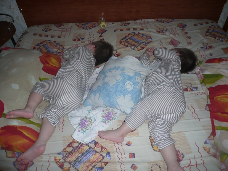Кратко, для истории: В будние дни подъём в 6.50. В 7.30 выходим из дома. В садик мальчишки ходят неплохо!!! Без слёз!!! Правда когда будим их --- бывают иногда слёзы. Кушают хорошо (пытаются сами, но воспитатели докармливают). С горшком в саду дружат. Иногда, за весь день ни одних мокрых штанов! Играют с другими детьми, идут на контакт с воспитателями!!! Дневной сон в саду чаще бывает короткий (1,5 часа), но они и дома по выходным дольше не спят… Из садика забираем их в 16.15. Ужинаем часов в 7 вечера, и в 21.00 отбой!!! Засыпают, как и прежде только с бутылочкой, в основном со смесью, и обязательно на родительской кровати, не забыв намотать километры на нашем ложе))). Сонных перекладываем в их кроватки, но ночью они снова, по очереди, перебираются к нам с мужем. Про ночной сон прям могу сказать, что он ОТВРАТИТЕЛЬНЫЙ… Крутятся, просыпаются, плачут, садятся на попы и успокаиваются только на нашей кровати. Я уже нервничаю, потому что папочка наш не выспавшийся уходит на работу, а я, как правило, просыпаюсь с затёкшей шеей и с болями в спине…Надеюсь, что это временные трудности. В выходные дни режим немного сдвинут. Утром спим до 8-ми точно!!! На каникулах бывало и в 10 вставали). Днём засыпают самостоятельно в своих кроватках!!!