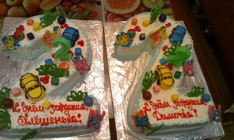 Им в годик ещё пофиг на тортики, и впинципе не день рождение, ещё маленькие. Я покупала один торт и поставила 2 свечки с единичкой и все дела. Дальше постарше будут тогда уже можно и изощряться.