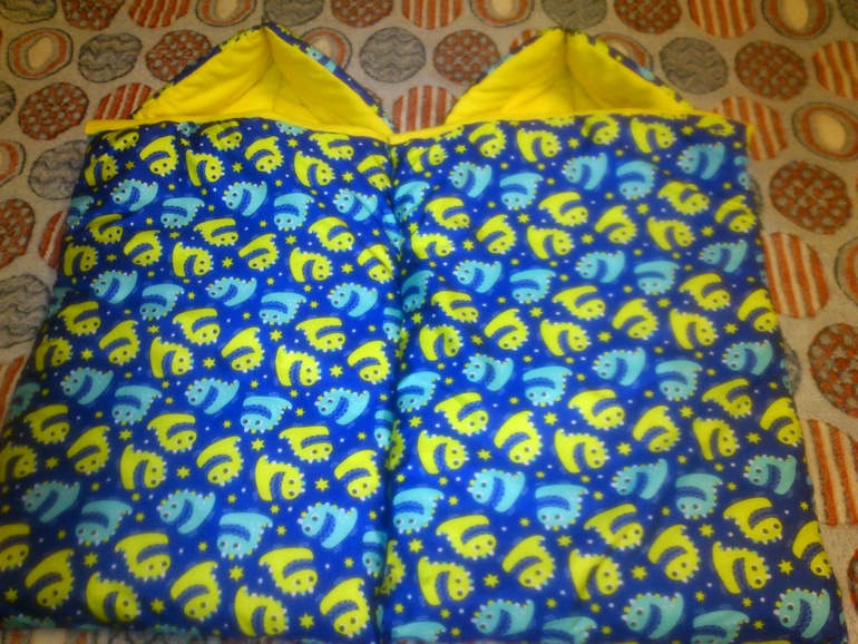 Покупки для наших малышей - хвастаемсяСшила я своим внучатам тёплые конверты в коляску. Строго не судите, я не профессионал, и поэтому кое где не очень ровненько. Ещё не пришила липучки или кнопки под низ отворота. Материал сверху дьюспо, синтепон 200 гр. на кв.м. и мягонькая флиска. По бокам замки и сверху на капюшоне тоже. 10 часов работы и вот что получилось)