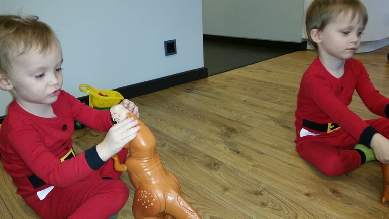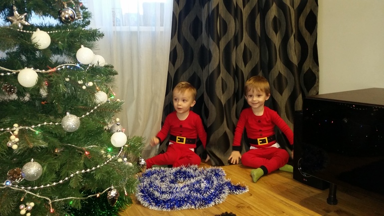 Когда пришла Снегурочка еще ничего,стояли смотрели открыв рот,но как зашел дед Мороз,Богдан на мужа залез, а Демид так и продолжал все с открытым ртом делать и хоровод водить и все остальное)