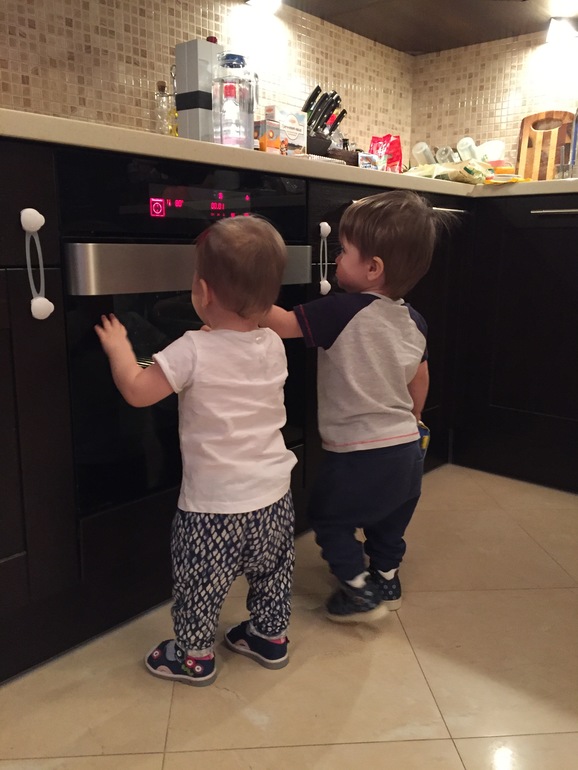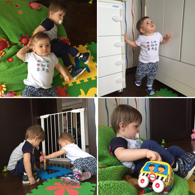 В квартире нет ни одного угла в который бы мы не вошли, то есть не влетели. Дети могут целый день бегать друг за другом, и не устают, в своей комнате куда мы им установили ворота безопасности сидеть вообще не хотят....им надо все: повисеть на шторах, залезть во все шкафы, в помойное ведро, вытащить все вещи из шкафов и никакие устройства блокировки и защиты не помогают...