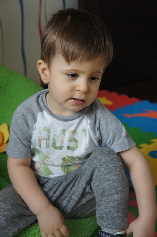 В декабре Ваня убегая от Нади упал лбом на паркет и рассек лоб, я думала не переживу этого, как вспомню так вздрогну. Крови было столько, что все кухонное полотенце было алое, вся его одежда то же, вызвали скорую, отвезли нас на полянку, обработали и положили пластырь, ну и замотали голову бинтом, который он сорвал через минуту......все зажило, остался естественно шрам 1,5 см, прямо по центру лба.....
