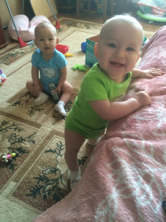 Двойняшки до 1 годаКак быстро летит время, и нам уже 9 месяцев, девять!!! в поликлинику из-за карантина мы не ходили и не пойдём в этом месяце, думаю ничего страшного, лишь бы не болеть. А так измерила рос: Полина 74, Толя 76. У Толи 4 зуба, у Полины пока ещё 2, но вот вот верхние выйдут. Что мы умеем: ползаем очень-очень быстро, стоим уверено и ходим держась за диван, за кроватки и вообще где есть за что держаться. Полина говорит "мама-баба-папа", умница дочка. Толя- "бах" и все. Ещё все впереди, вечером очень любят ползать наперегонки и играть в прядки. Смешные в этот момент очень