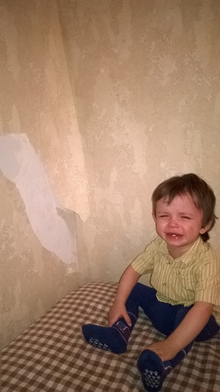 Обои пострадали. Муж говорит недавно: и зачем так спешили ремонт делать до рождения сыночков?