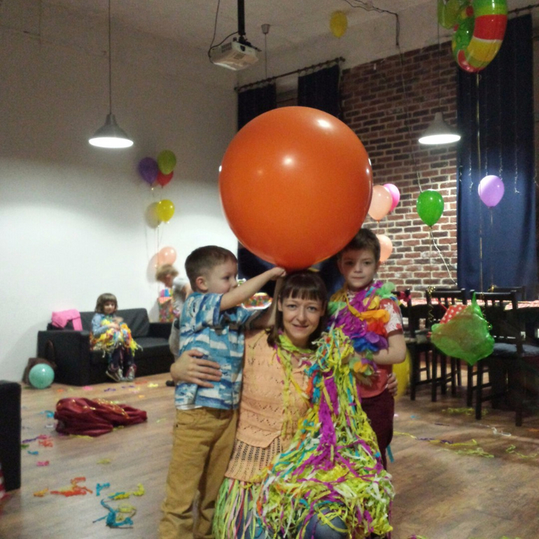 Всем советую большие шары.Они легко надуваются без насоса,крепче чем обычные шары и радость детей от шаров просто не передаваемая.Шары и бумага у нас были салютом и это бразвлечение было под конец праздника.