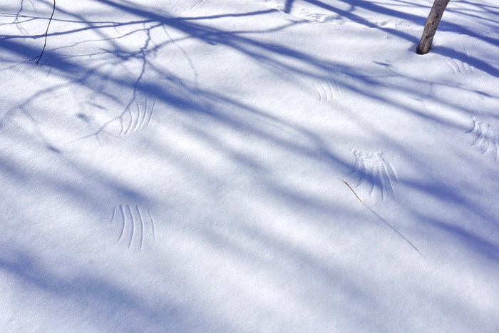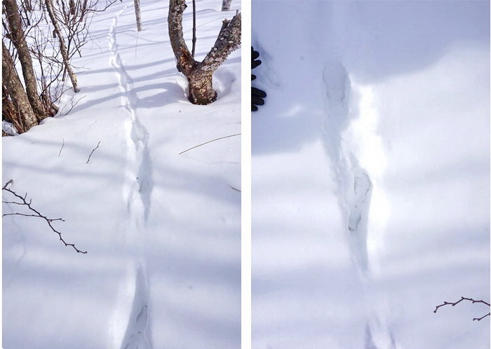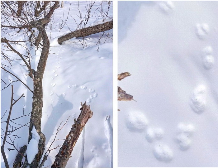 В лесу мы видели множество следов. Я не всегда носила с собой телефон, а камеру - тем более, но кое-что мне удалось заснять. В зависимости от типа снега одни и те же следы выглядят совсем по-разному! В этом мы убедились,проконсультировавшись с опытными охотниками.