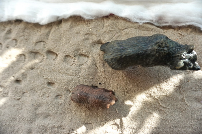 На кинетическом песке делали следы,