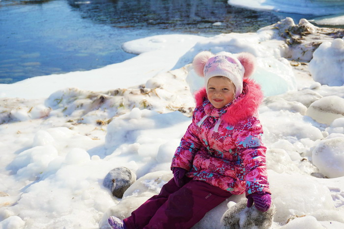 Мимо нас проплывали утки целыми стайками, чайки сидели на плавающих льдинах и пытались выловить рыбу, а однажды на наших глазах прилетела ворона с апельсином в клюве, дети подбежали ближе, чтобы посмотреть, она бросила апельсин, оказалось, что он пустой)