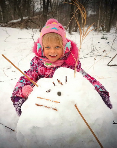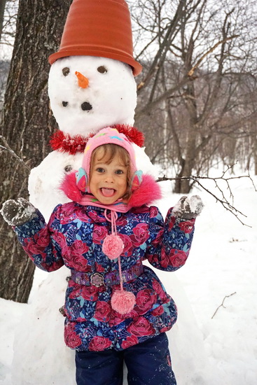 вот, кстати, первый Юлин снеговик, вылепленный собственноручно от и до,