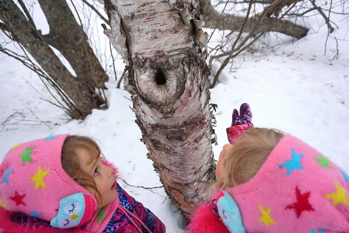 потом дети побежали прыгать с поваленного дерева и обнаружили дупло. На следующий день они везде искали эти самые дупла, гнёзда, древесные грибы...Я только и слышала :" Ух ты.....мам, смотри......". Мои маленькие дети так обожают делать открытия)