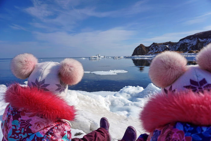Однажды, когда я просто проезжала мимо, передо мной открылась такая потрясающая картина - настоящая холодная зимняя красота! Конечно, я не могла не показать это детям. Недалеко от берега виднеется айсберг (на самом деле это заледеневшие обломки корабля).