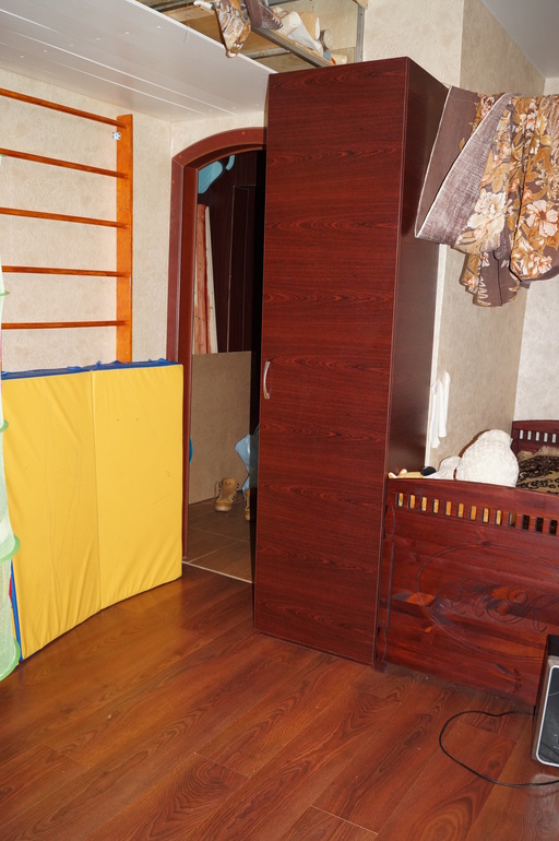 Наверх дети залезают с помощью небольшой подставки, высотой см 30, она у нас курсирует от умывальника к кроватям.