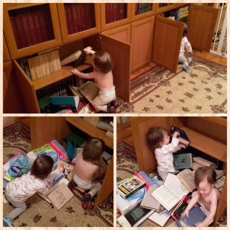 Научились открывать все дверцы и ящики, с которых мы сняли ручки. Вот что для меня сложно - отвлекать девочек от шкафов или хотя бы следить, чтобы не прищемили руки, потому что после вытаскивания всех вещей с полки обязательно следует энергичное закрывание дверок. И вторая непростая задача - ловить их, когда они бегают по дивану или кровати. Если пупсам что-то не нравится, они топают ногами и бросают вещи на пол. Покой нам только снится :)