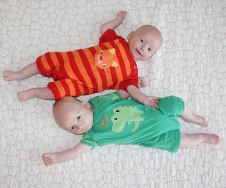 Крутышки! Я двоих уже так еле поднимаю ))) Как же у вас хорошо, тепло... кутать в сто одежек не надо. Старший братик обоих таскает?