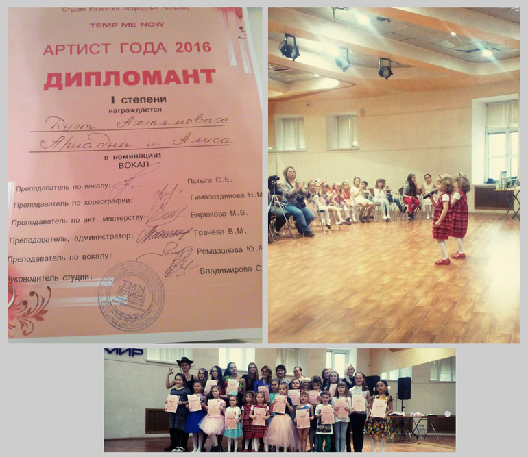 Двойняшки с 3-х летДолгие занятия и репетиции девочек принесли свои плоды, мы очень хорошо выступили на конкурсе в номинации Вокал )))) Это первый диплом дочек, а мы там были одни из самых маленьких ))))