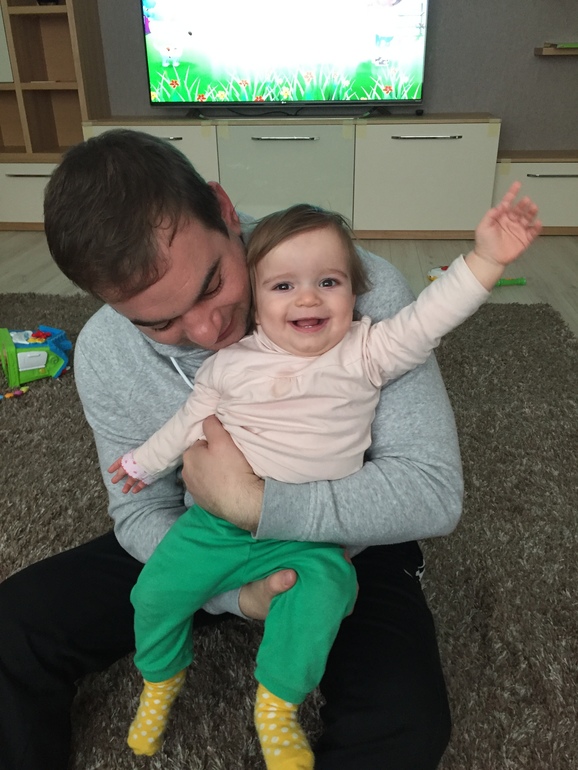 Скажу сразу: становится легче с каждым месяцем. Малыши уже многое понимяют и мы с мужем уже многое в их поведении понимаем гораздо лучше. Мы стали спать лучше по ночам, слава Богу особо не болеем, не деремся, не кусаемся и не истерии по пустякам. Милочка почти догнала сестру в плане веса и роста: 9150 гр и 75,5 см. По преждему 6 зубов. Особо не требует к себе внимания, и редко просится на ручки. Может пол часа сидеть и играться с одной игрушкой. Ходит в доль опоры и за ручки, очень много болтаем на своем языке: энь, ань, мама, папа, гага, дядя, нянь. Кушаем медленно и маме приходится танцевать с бубном чтобы ее накормить. Последнее время стала очень тяжело засыпать на ночь. Мне приходится иногда и по часу ее качать на руках. что с этим делать? почему так? Режим у нас тот же. Совсем другое дело Ева: кушает все с аппетитом и засыпает сама всегда быстро. У нас 5 зубов и режется шестой. Ева у нас массовик затейник и батарейка энерджайзер в одном лице. Вес 9300 гр и рост 75,5 см. На месте не может усидеть и секунды. вот вот ждем что пойдет сама, пока только за ручку но уже очень уверенно. Мы шутим что Ева не пойдет а сразу побежит! :) Ребенок стал очень улыбчивым и хохотушкой. Знает где у куклы носик, глазки и ротик. Еще у нам есть игрушка домик и Ева показывает на нем где звоночик, уточка и книжка. Из любимых слов: тить, диди, гага, кака. Сортер пока нам не интересен и пирамидку мы только мастерски разбераем, нанизывать кольца пока не хотят. Но я пока не заморачиваюсь на этот счет. Всему свое время!
