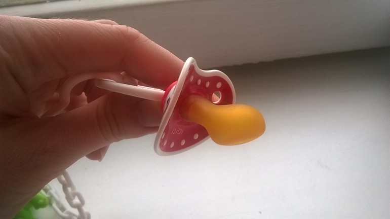 3) Теперь САМОЕ важное. Ребенок ночью или днем проснулся вдруг вне кормления и не знаешь как угомонить, а с двойней еще и не разбудить второго. Поверьте, мы первые 7 месяцев жили в 1-комнатной квартире с 3 детьми и не сошли с ума от шума благодаря тому, что приучили малышей к соскам. Муж сказал недавно, что даже не помнит диких оров и бессонных ночей (он спал в кухне). С дочкой я тоже наломала дров и с двойней уже училась на своих ошибках. Я купила ей типа крутую соску Авент, а она ее как выплюнула, так больше и не взяла, все время плевала ее. Перед родами двойни я почитала отзывы о сосках и поняла, что чаще всего детям нравятся мягкие латексные соски, а не силиконовые (они потверже). Авент у меня была силиконовая такая прозрачная по цвету. Малышам я купила соски "Латексные ортодонтические размер 0+" оранжевого цвета. Потом в 3 месяца сменила их на точно такие же по форме, но покрупнее по размеру, т.к. те маленькие стали выпадать изо рта. А те что я взяла в 3мес так сейчас мы ими и пользуемся. Фирму не знаю, купила в детском магазинчике, но выбирала долго, чтобы форма была именно такая:
